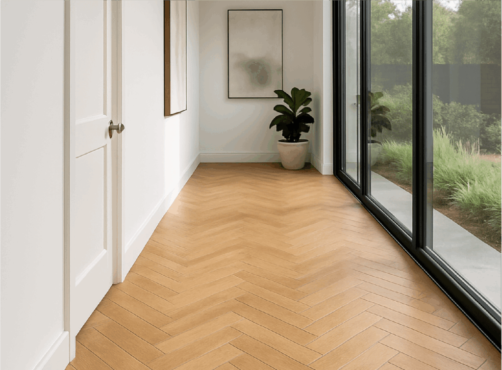 El piso que combina estilo, resistencia y fácil instalación El piso SPC Herringbone marca Nuvow es una opción moderna y