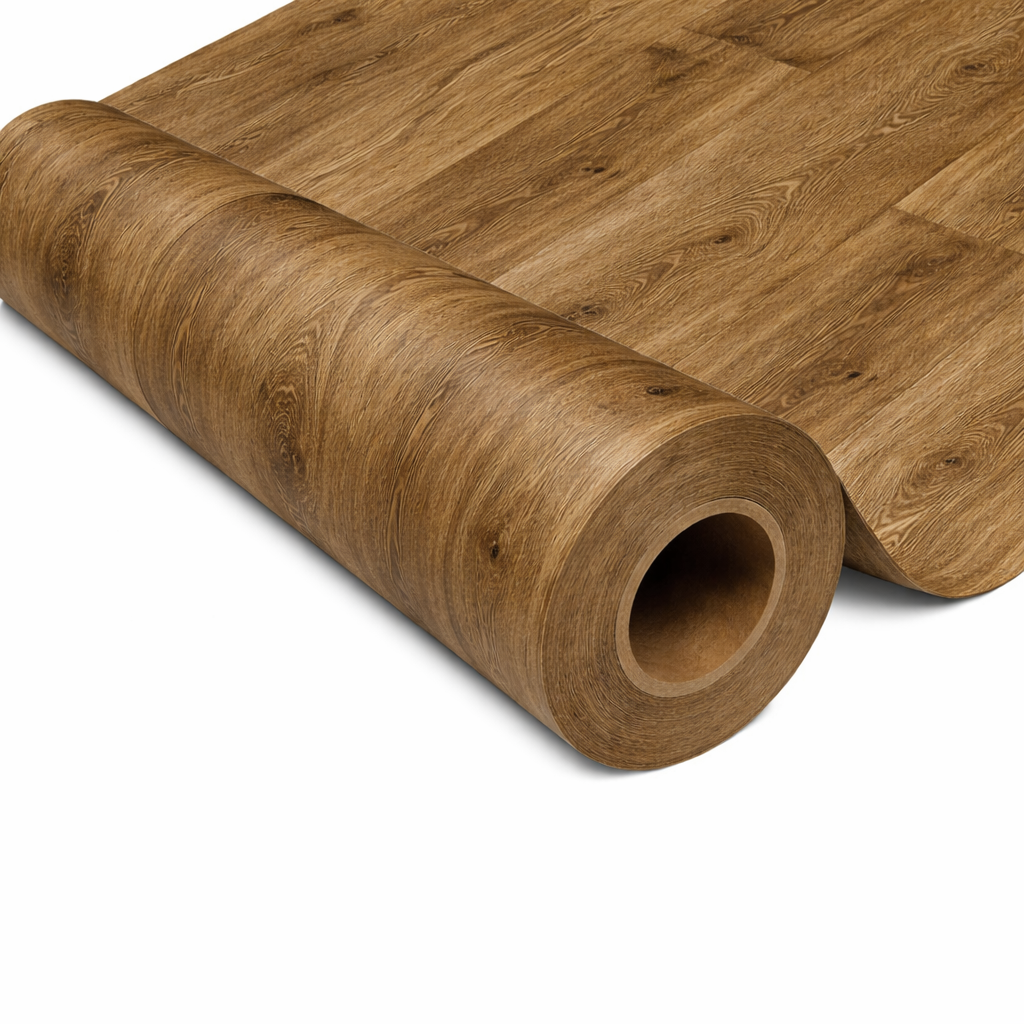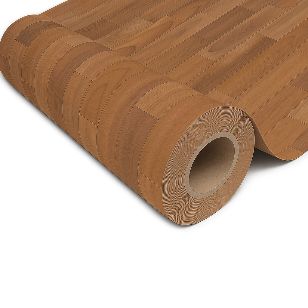 Piso vinílico en rollo con superficie continua y uniforme