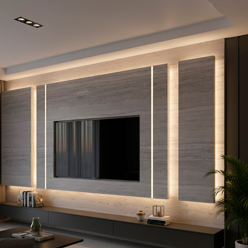 Cada lámina de flexstone es única. Las vetas, tonos y texturas reproducen piedras como mármol, travertino o laja, aportando sofisticación y realismo a cualquier espacio.