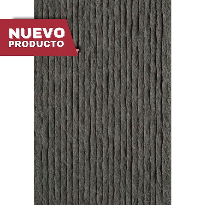 Es una lamina de piedra con medidas de 60cm x 1.20m la cual puedes pegar con adhesivo Mape Flex MS 45 directamente a tu muro. sin obras pesadas ni complicaciones.