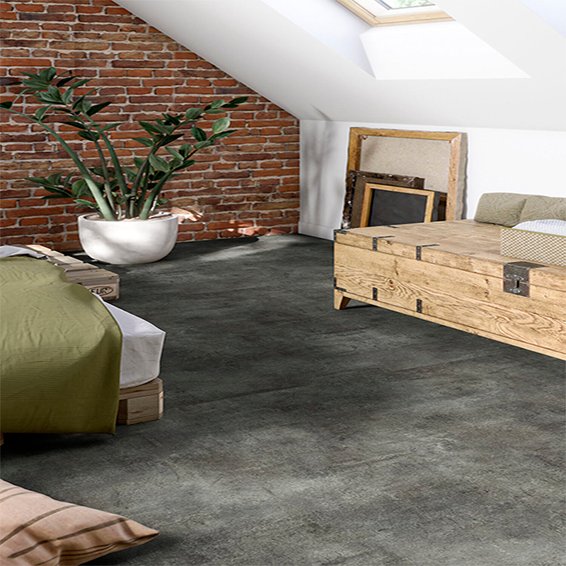 El piso vinílico en rollo modelo Kiruma Metalic Black es un recubrimiento semi comercial elaborado en PVC de alta resistencia. Su tono gris oscuro metálico tipo concreto aporta un estilo moderno e industrial, ideal para proyectos residenciales y comerciales ligeros que buscan durabilidad y diseño contemporáneo.