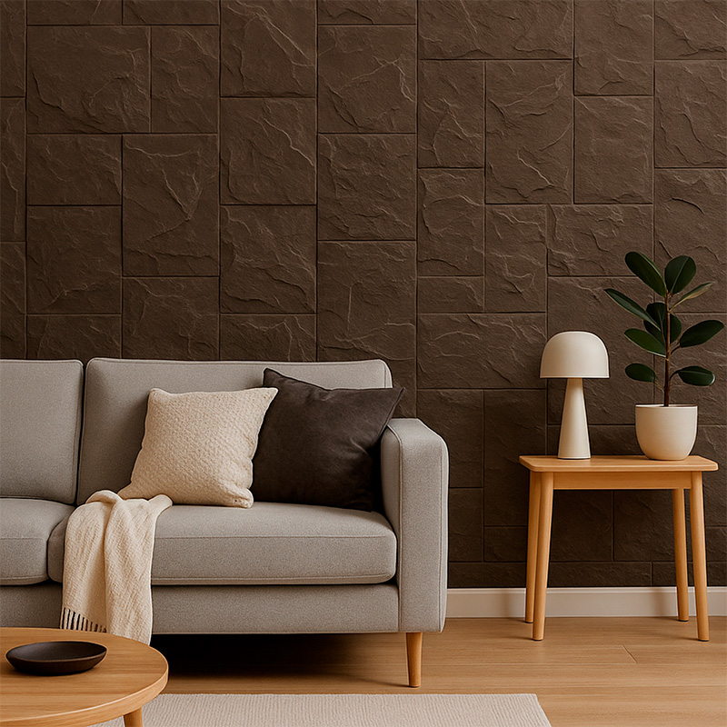 Su diseño con textura de piedra marmoleada en tonos café y negro ofrece una sensación moderna y elegante que se adapta a diferentes estilos decorativos —desde ambientes rústicos hasta espacios contemporáneos—. Es ideal para muros interiores, fachadas, pasillos, recibidores o áreas de acento donde se busca destacar con un acabado natural y realista.
