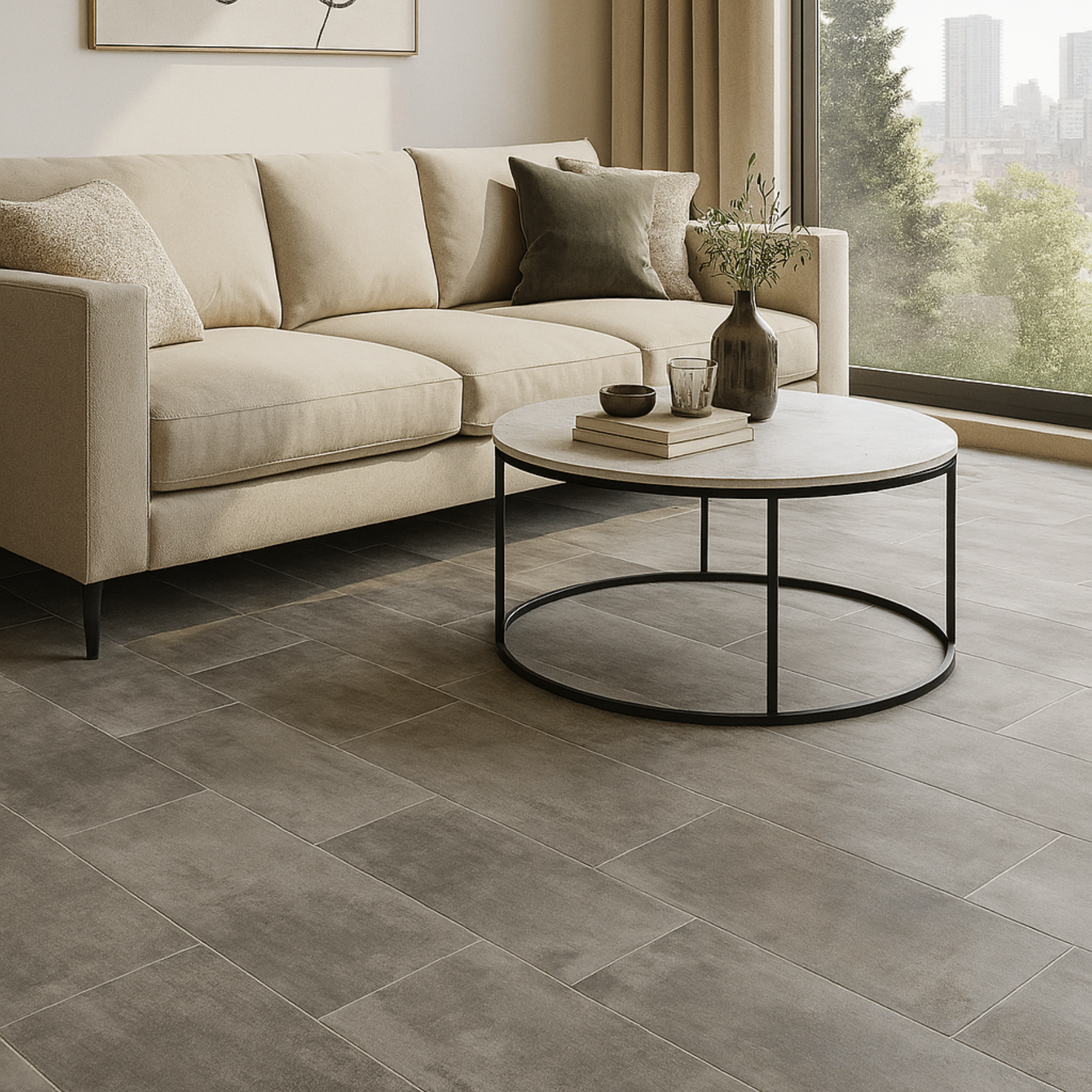 El piso SPC mate color gris modelo Cementi de la colección Terranova combina la durabilidad de la tecnología SPC con la elegancia de un acabado super mate tipo cemento. Su tono gris neutro aporta una apariencia moderna, limpia y versátil que se adapta fácilmente a cualquier estilo de decoración, desde industrial hasta escandinavo.