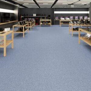 En áreas comerciales y educativas, este recubrimiento destaca por su resistencia y fácil limpieza.