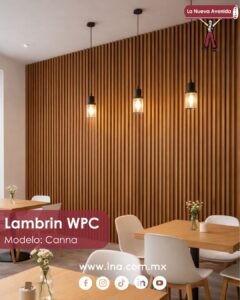 El lambrín WPC es perfecto para crear ambientes cálidos y modernos. Este tipo de lambrín se utiliza mucho en restaurantes, cafeterías y locales comerciales por su estética, fácil instalación y bajo mantenimiento.