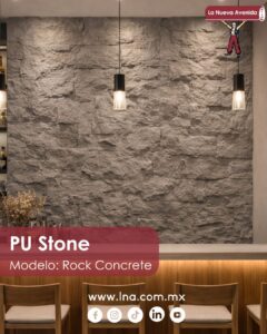 Para quienes buscan una textura tipo piedra, el PU Stone y el Flex Stone permiten crear muros con apariencia natural. Son ideales para conceptos modernos, bares, restaurantes y locales con diseño temático, muy demandados en remodelaciones previas al Mundial.
