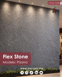- Placa tipo mármol, lambrín WPC, PU Stone y Flex Stone